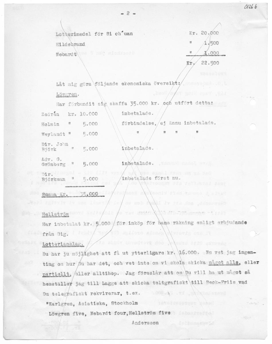 • Ola -2- Lottarimedel för 81 cÉ”van Er. 20.000 Hildebrand "2.800 ——] AA Kr. 22.500 Låt mig göra följande ekonomiska övorslkt: Lövgren. Har förbundit sig skaffa 35.000 kr. och utfört detta: 2earån kr. 1... Visa hela
