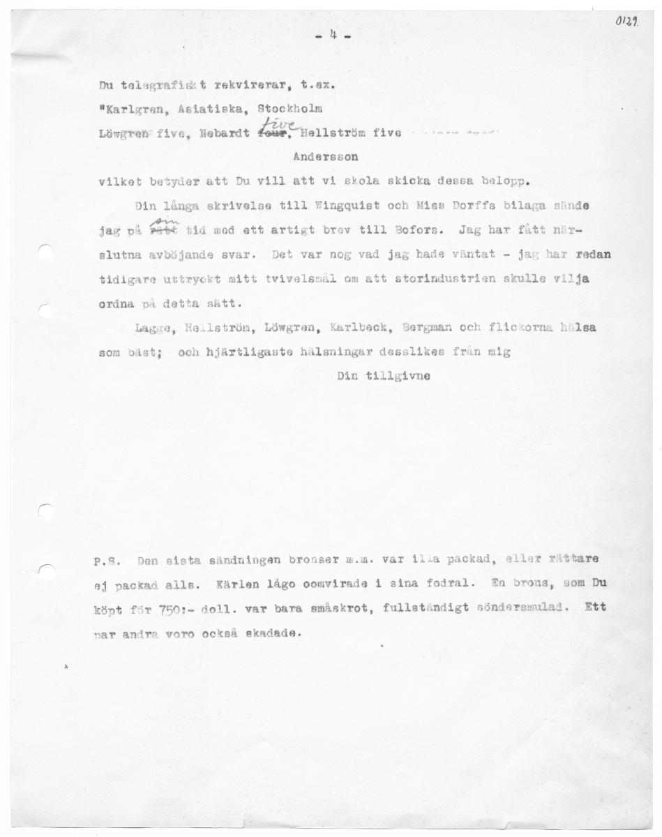 • om. - 4 Du tolsgrafid: t rekvirerar, t.ex. "Karlgren, Asiatiska, Stockholm Lömwgraty five, Nebardt . Hellström five Andersson vilket betyder att Du vill att vi skola skicka dessa belopp. Din långa skr... Visa hela
