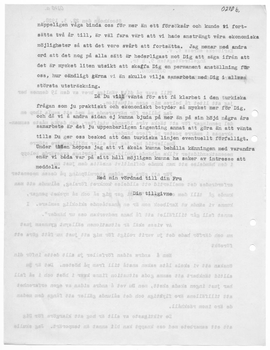 • ÖR?D b, näppeligen våga binda oss för mer än ett försöksår och kunde $i fort- sätta två år till, är väl fara värt at vi hade ansträngt våra ekonomiskes möjligheter så att det vore svårt att fortsätta. Jag menar med andra ord att det nog på alla sätt är hederligast mot Dig att säga ifrån att det är mycket liten utsikt att skagfa Dig en SRskanget anställning fär oss, hur oändligt gärna vi än skulle ... Visa hela