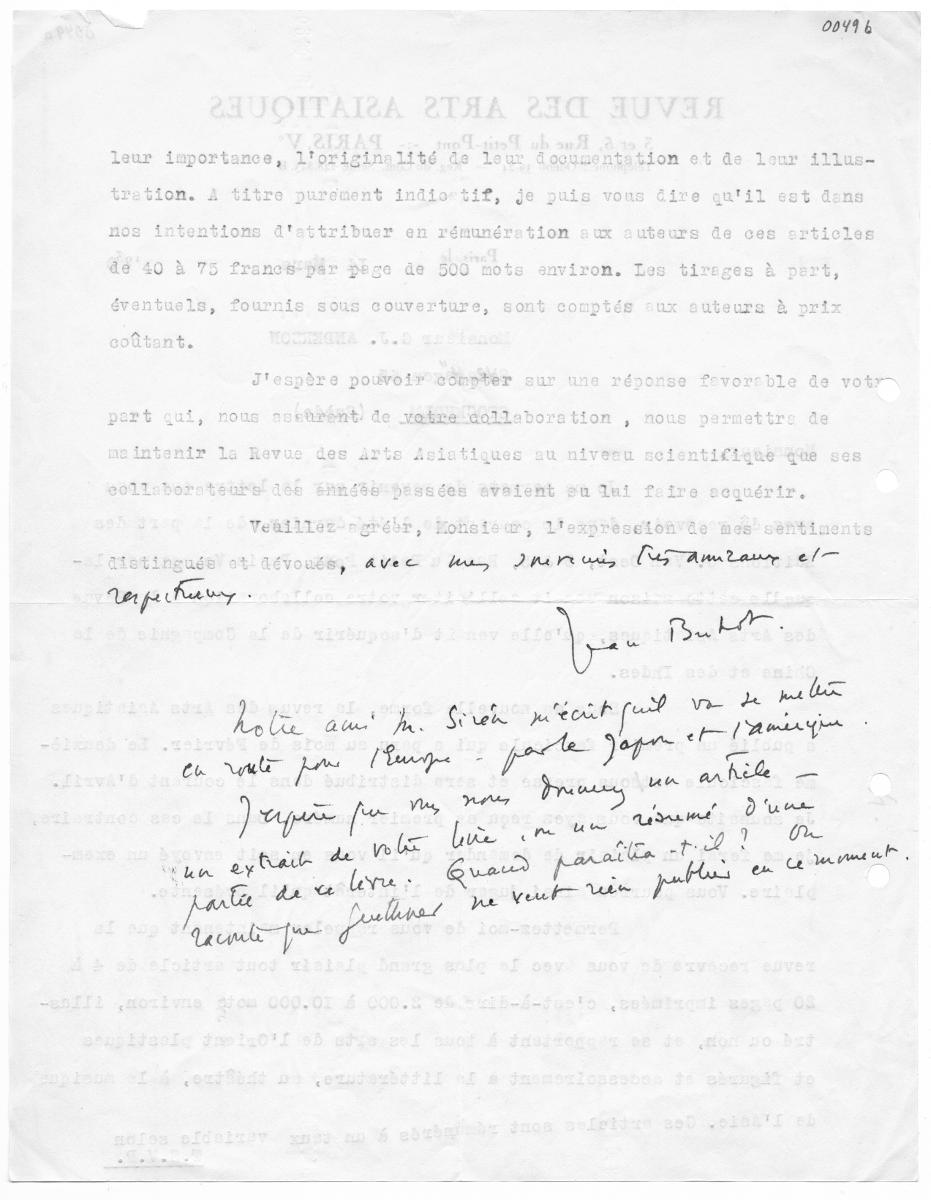 « Ö079 a REVUE DES ARTS ASITATIQUES 3 et 5, Rue du Petit-Pont -:- PARIS, VE Telephone : Odéon 39-24 — Reg. du Com. Seine 228.813. B Paris, le 14 Hars = ä 930) t Monsieur GÅ.J. ANDERSON u / Syezfkgen. 65 I STOCKHOLM. os (Subde) i : PINS e Je me permetls de revenirs sur le: Llottre que. vous 3 evez.då recevoir,. dens. le courentsde 116té dlernier,vde 12 part des bj ch Så SS QQ ör [601 3 AA Dj OO [45] in ar OR 2 Oo ”» a 3 E Mm ee ford rd er | et rd ”O B cr ” Hd R FH» mm - = | Oo ” Mm er (Av Mm FH 1 fu I [Fuse nouvelle forme, la reväie dös irts Asia tiques a publié un prömtef fasbicyle qui a parn au mois de Février. Le deuxiå= me föstictle esktfous, presse et sera distribué dbns 18 eodraent d'tAvril. Je souha ite" gqué. vous 2yez regu ce prem is?" numértorIDdus le cas contraire sj9. me feral un olulsir de demander qåridd vods en seit envoyé un exem- plaire. Vous Dåurrfeafatnst juger de 1'intetetrauh l Preésente. Permettez-moi de vous reppelertmeintenant gue la revue recevra de vous avec le plus grand plaisitr tout arttiele de 4 & 20 pages imprimées, c!est-å-dire de 2.000 &å I0.000 mots environ, illus= tré OU NOM, et se rapportent ä tous 1es arts de 1'0Orient olastigque rémunérés «I ; MuNérés å un taux variable seton AA RO V ok 6