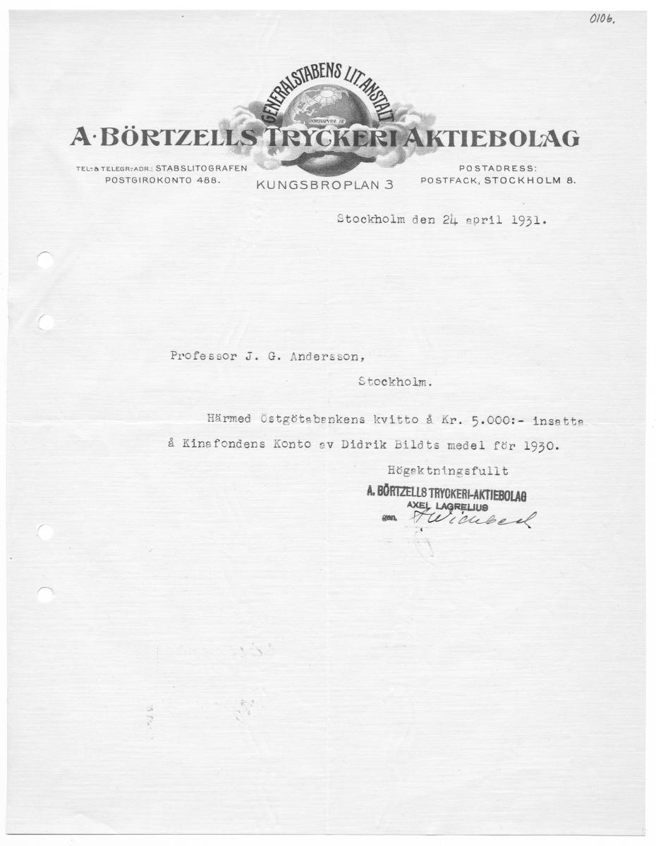 • Tillverkad 1931-04-24 i Stockholm av Börtzells tryckeri AB, Lagrelius, Axel.