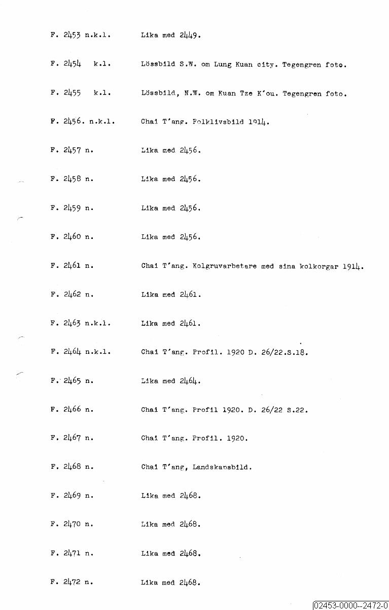 • Sida ur katalog för fotografier av Johan Gunnar Andersson, F.2000-3984.