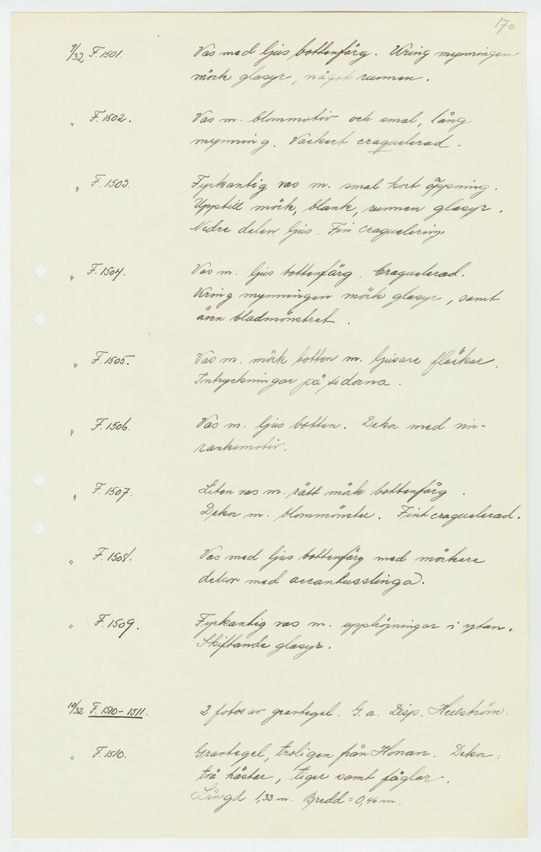 • Sida ur katalog för fotografier, "Presentfotografier" från Johan Gunnar Andersson, F.0001-1999, 20000-.