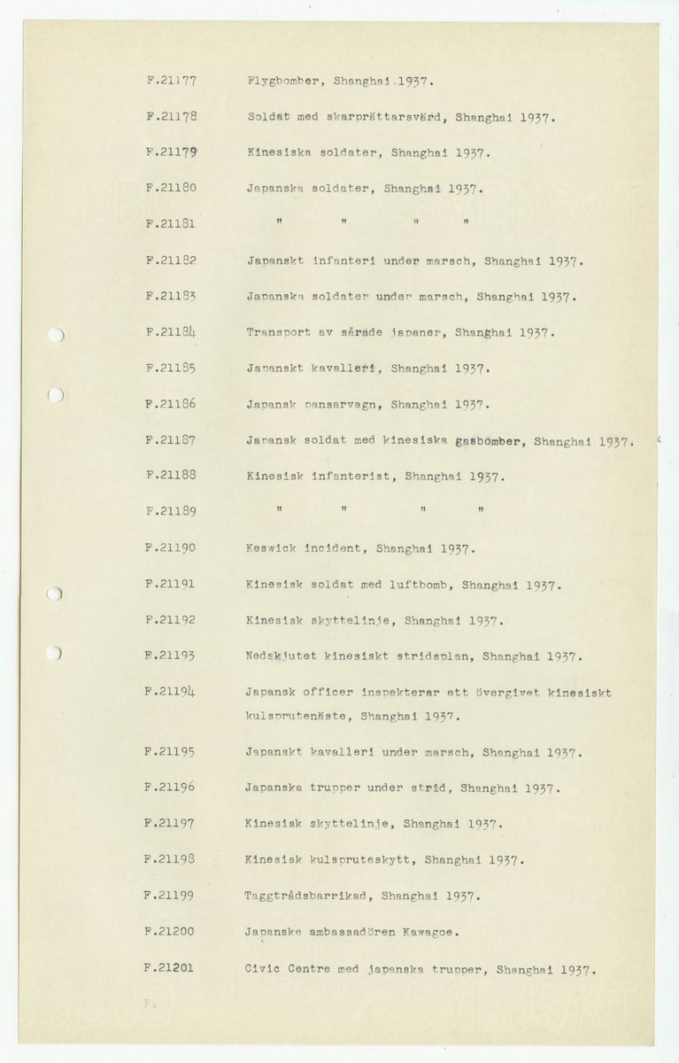 • Sida ur katalog för fotografier, "Presentfotografier" från Johan Gunnar Andersson, F.0001-1999, 20000-.