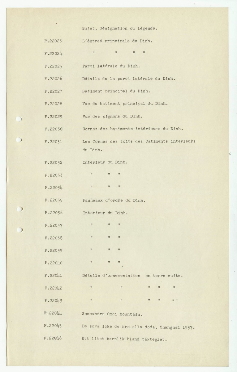 • Sida ur katalog för fotografier, "Presentfotografier" från Johan Gunnar Andersson, F.0001-1999, 20000-.