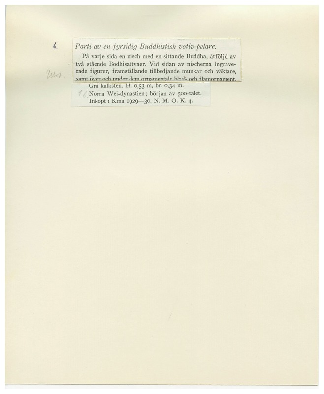 • D1BB-1, katalogkort över NM/NMOK:s (Nationalmuseum, Ostasiatisk konst) föremål.