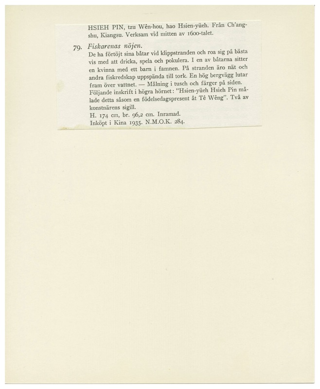 • D1BB-3, katalogkort över NM/NMOK:s (Nationalmuseum, Ostasiatisk konst) föremål.