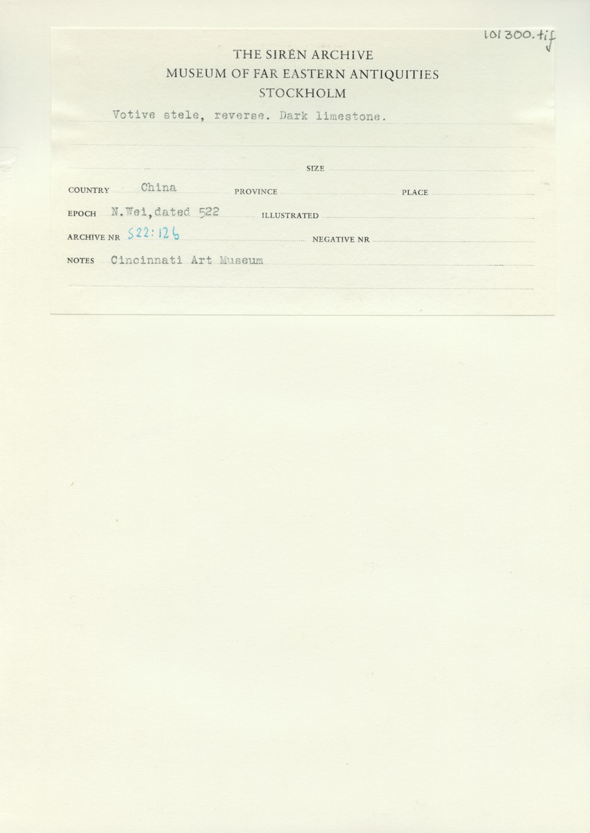 • Katalogkort ur Östasiatiska museets arkiv, box 15.