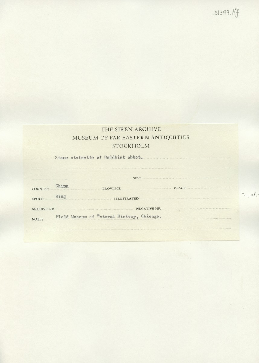 • Katalogkort ur Östasiatiska museets arkiv, box 19.