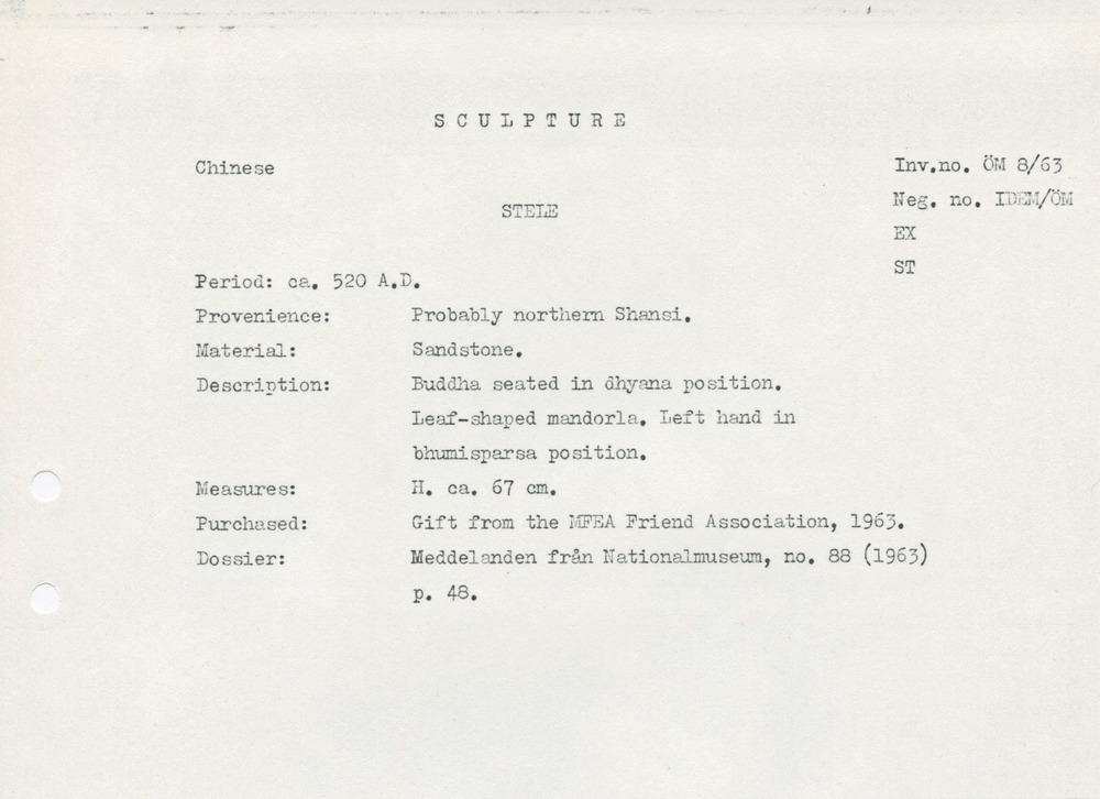 • Katalogkort ur Östasiatiska museets arkiv.