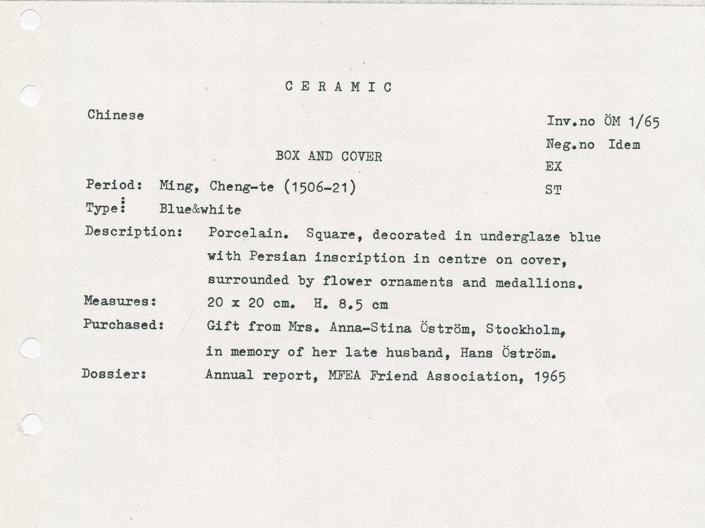 Källa <presOrganization> Statens museer för världskultur - Östasiatiska museet