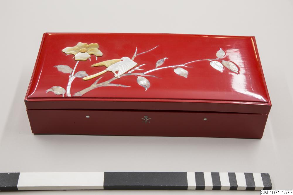 구스타브 아돌프 6세 전 스웨덴 국왕 (King Gustaf VI Adolf; 1882 – 1973) 유증 이 상자 및 뚜껑은 구스타브 아돌프 6세 전 스웨덴 국왕이 소장했던 것을 다른 유물들과 함께 1973년에 동아시아박물관에 기증하여 스웨덴 국민들이 향유할 수 있도록 한 것이다. 1973년 구스아브 아돌프 6세 전 스웨덴 국왕이 남긴 기록에 따르면, 이 상자, 상자의 뚜껑 및 상자 안에 보관되어 있는 옥비녀는 1961년 11월 스톡홀름에서 경희대학교의 총장을 지낸 조영식 박사로부터 받은 선물이다.