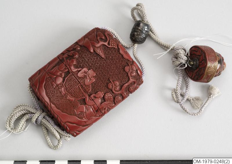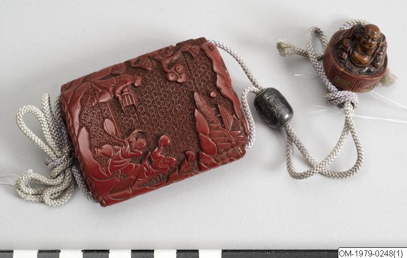 Netsuke-föremålets funktion består i att vara en motvikt till de "hängande saker" (sagemono) som bars till kimonon av männen. Vanliga hängande saker var olika dosor, till exempel medicindosor (inro) och tobakspungar. Netsuke betyder ungefär "fästa rot" och tidiga netsuke (före sent 1600-tal) var förmodligen naturliga, obearbetade rötter och liknande. Från 1700-talet gjordes de mer föreställande och ofta i trä eller elfenben. Så småningom började konstnärerna att signera sina netsuke. (Baserad på text från utställningen Japan. Föremål och bilder berättar. 2011)./PH