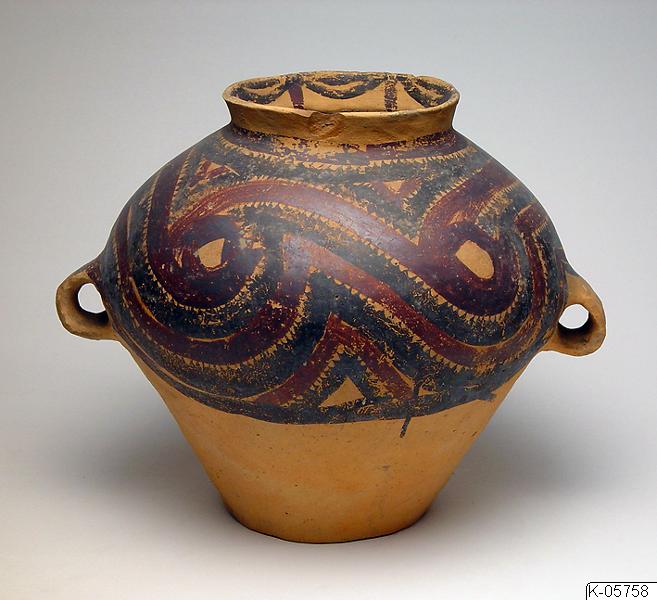 • Kruka av målad keramik, från Kina. Krukan är målad med mönster i svart och violett. På undersidan finns påskriften “Ning Ting Hsien Wa Kuan Tsui Bought”. Invid föremålsmärkningen finns också bokstaven... Visa hela