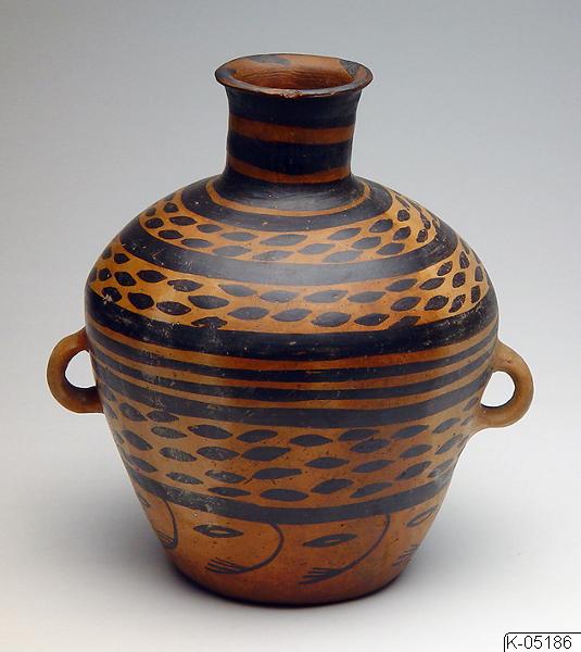• Kruka av målad keramik, från Kina. Krukan är målad med mönster i svart. På undersidan finns påskriften “T’ao Sha Hsien Ka Tu Ma Kou Bought”. Invid föremålsmärkningen finns också bokstaven “S” inskriven i en fyrkant.