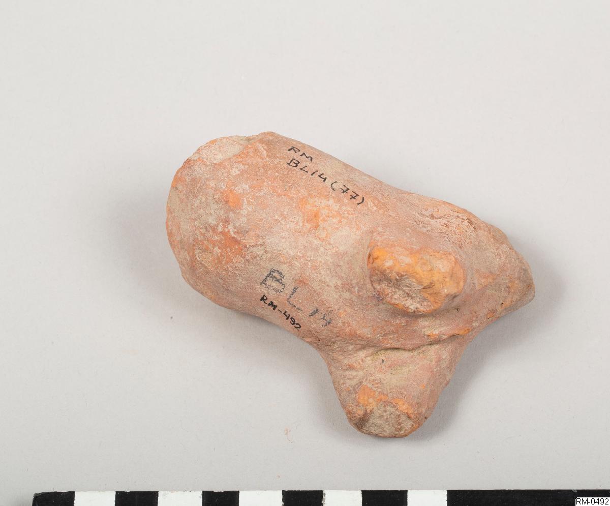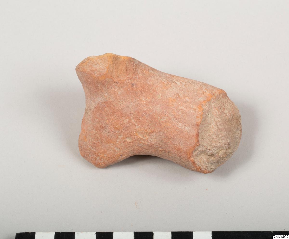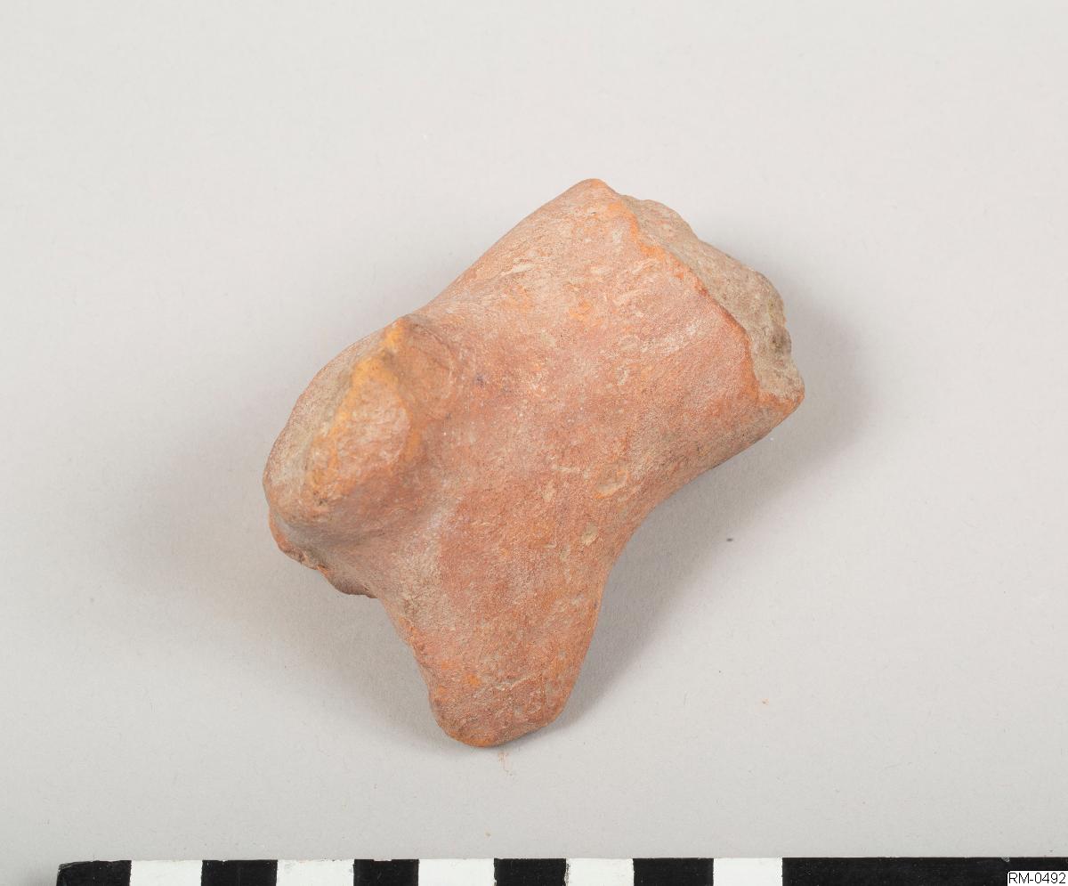 • Skulpterad figur, i rött lergods, föreställande ett fyrbent djur. Möjligen häst eller ko.