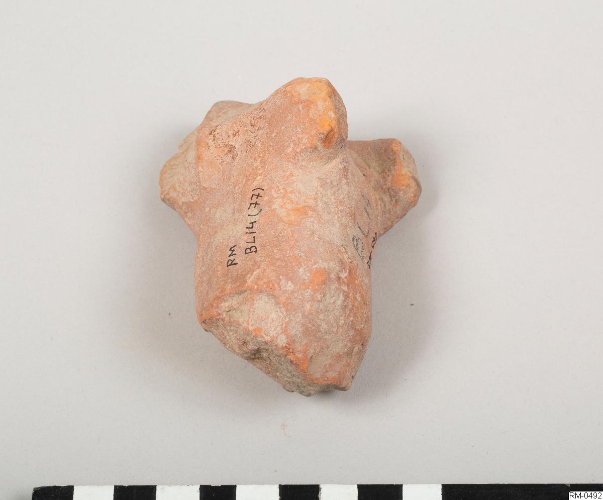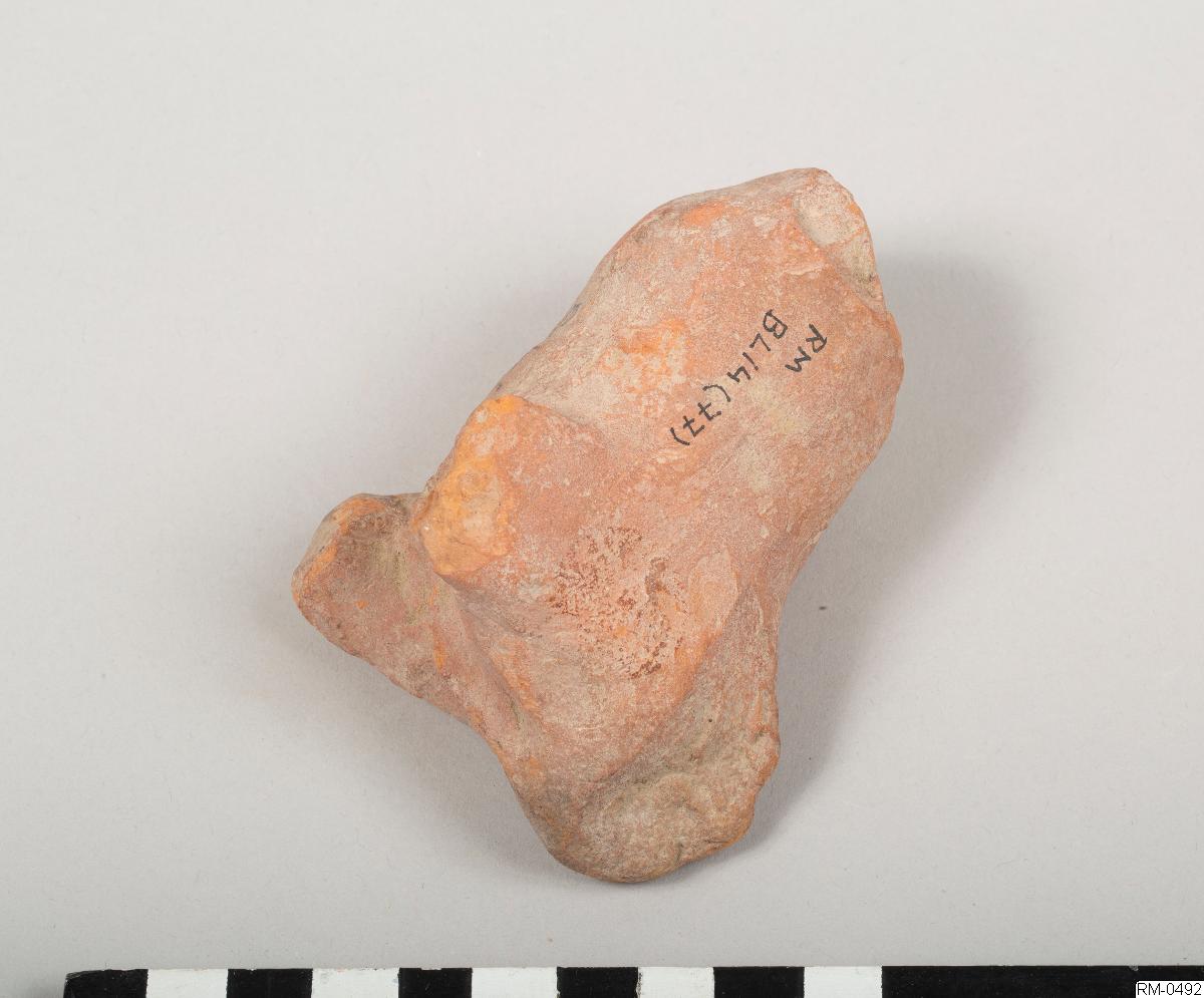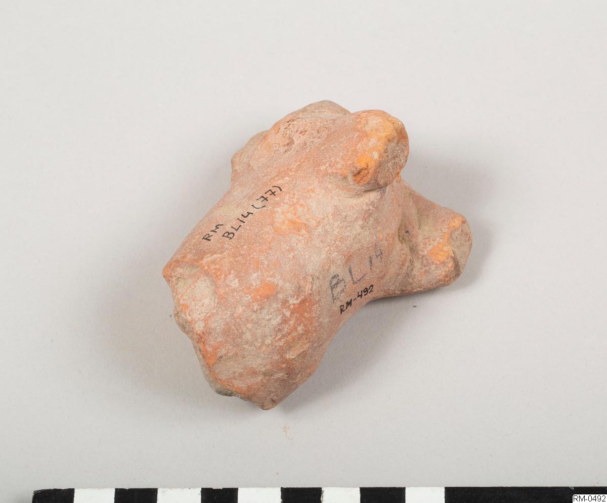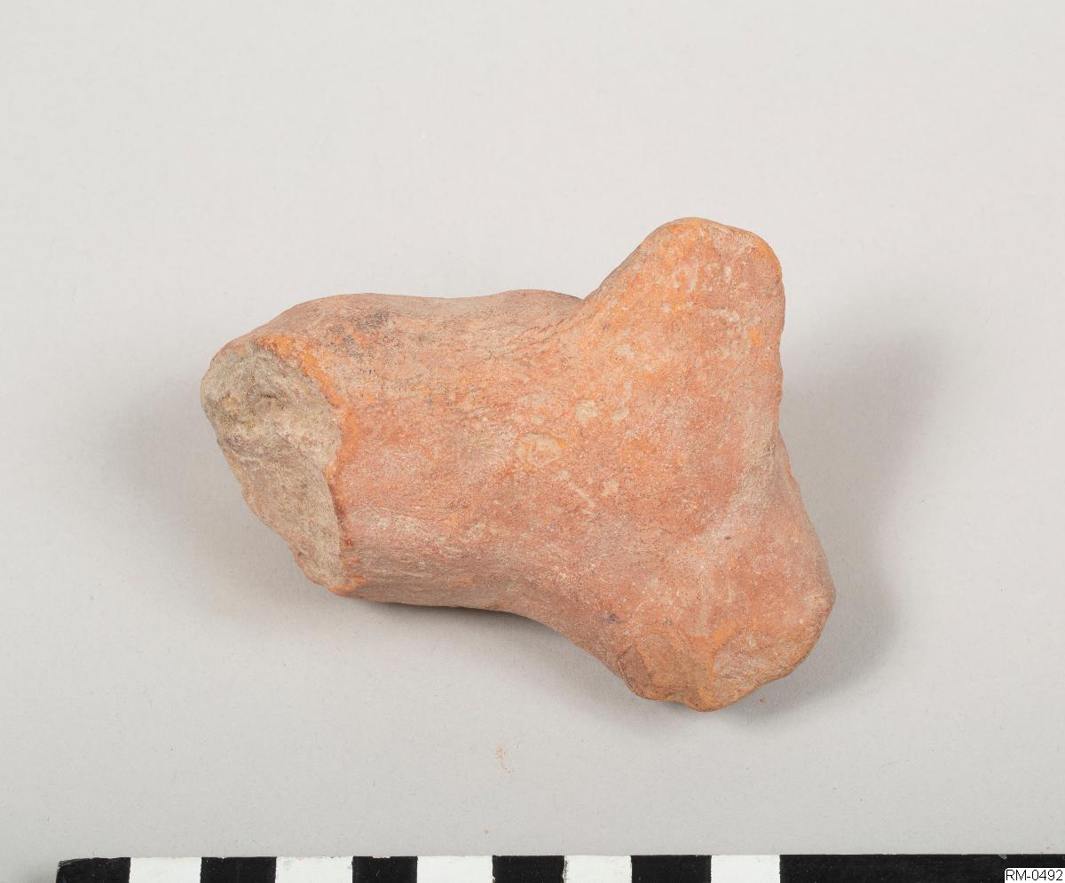 • Skulpterad figur, i rött lergods, föreställande ett fyrbent djur. Möjligen häst eller ko.