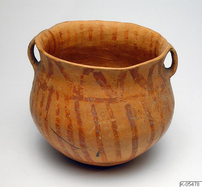 • Kruka av målad keramik, från Kina. Krukan är målad med mönster i rödbrunt. På undersidan finns påskriften “Wa Kuan Tsui Bought”. Invid föremålsmärkningen finns också bokstaven “S” inskriven i en fyrkant.