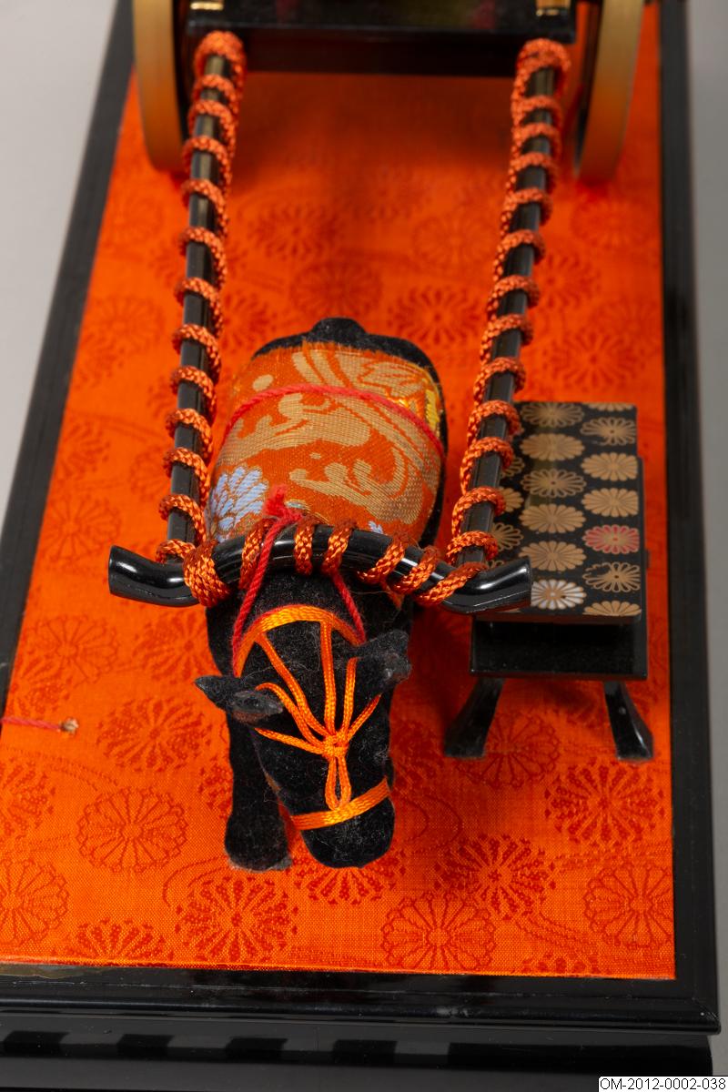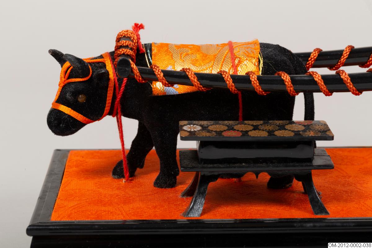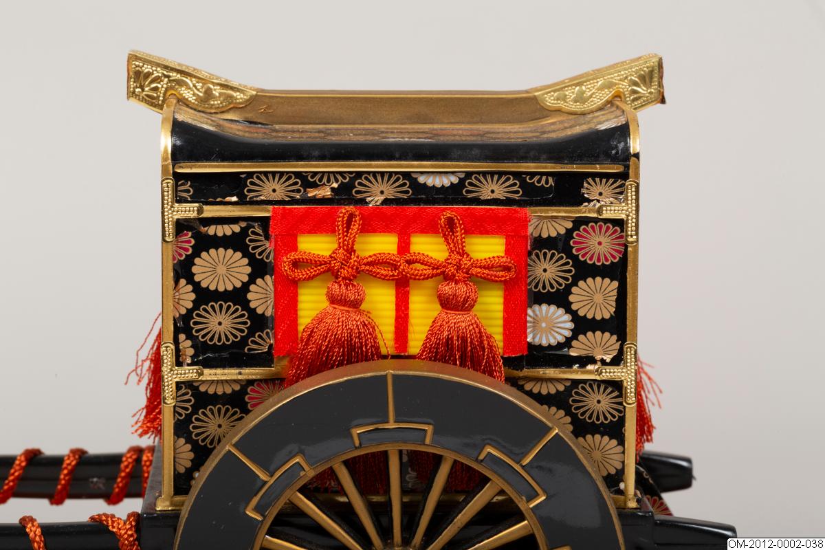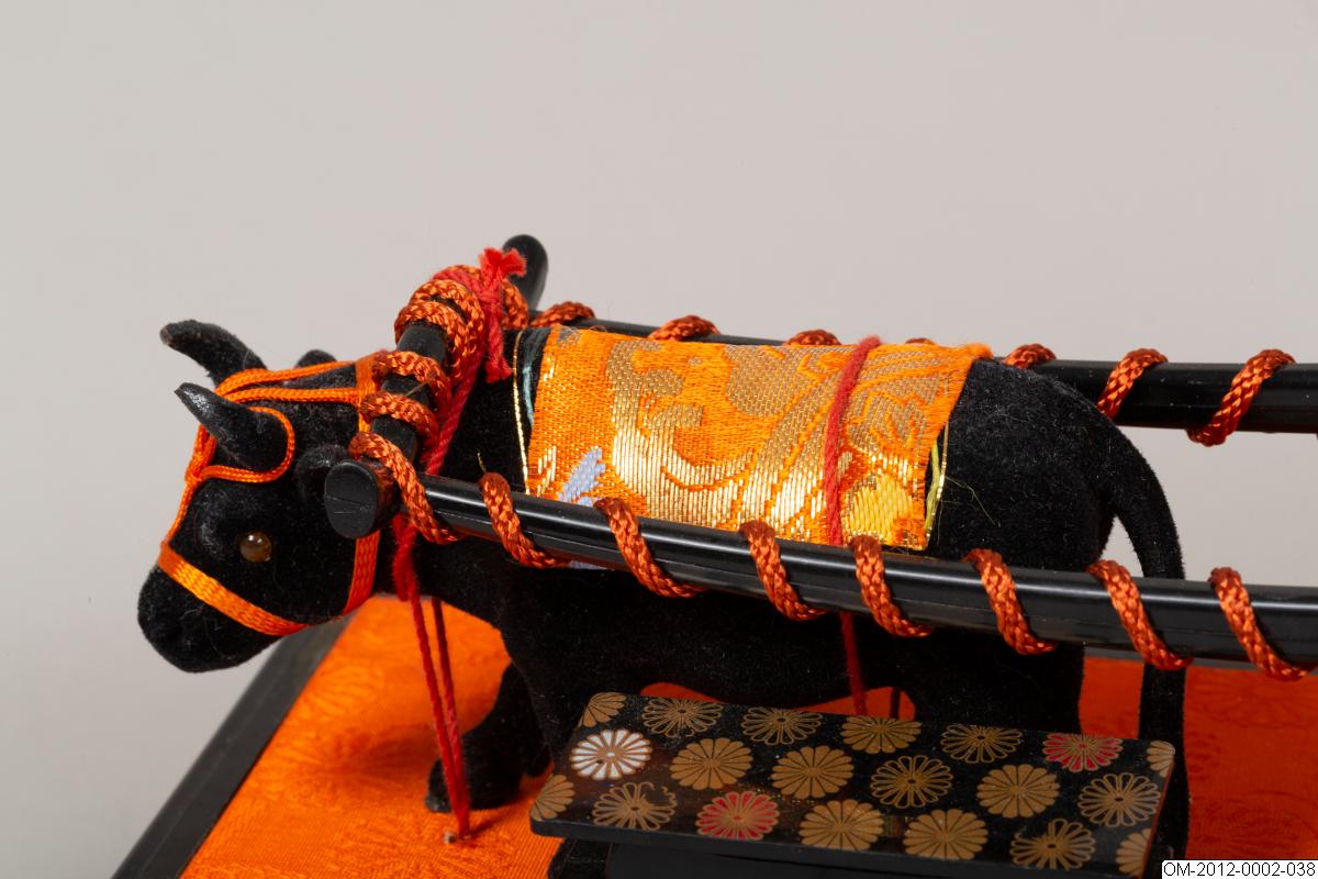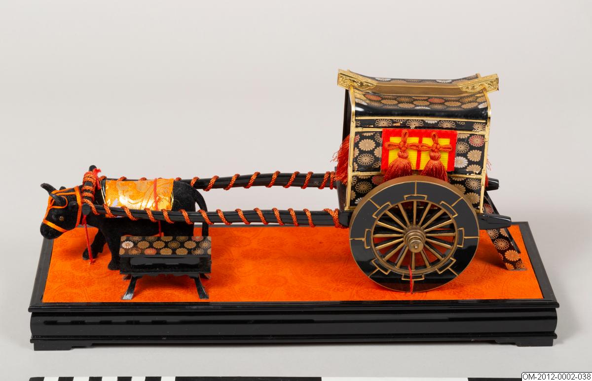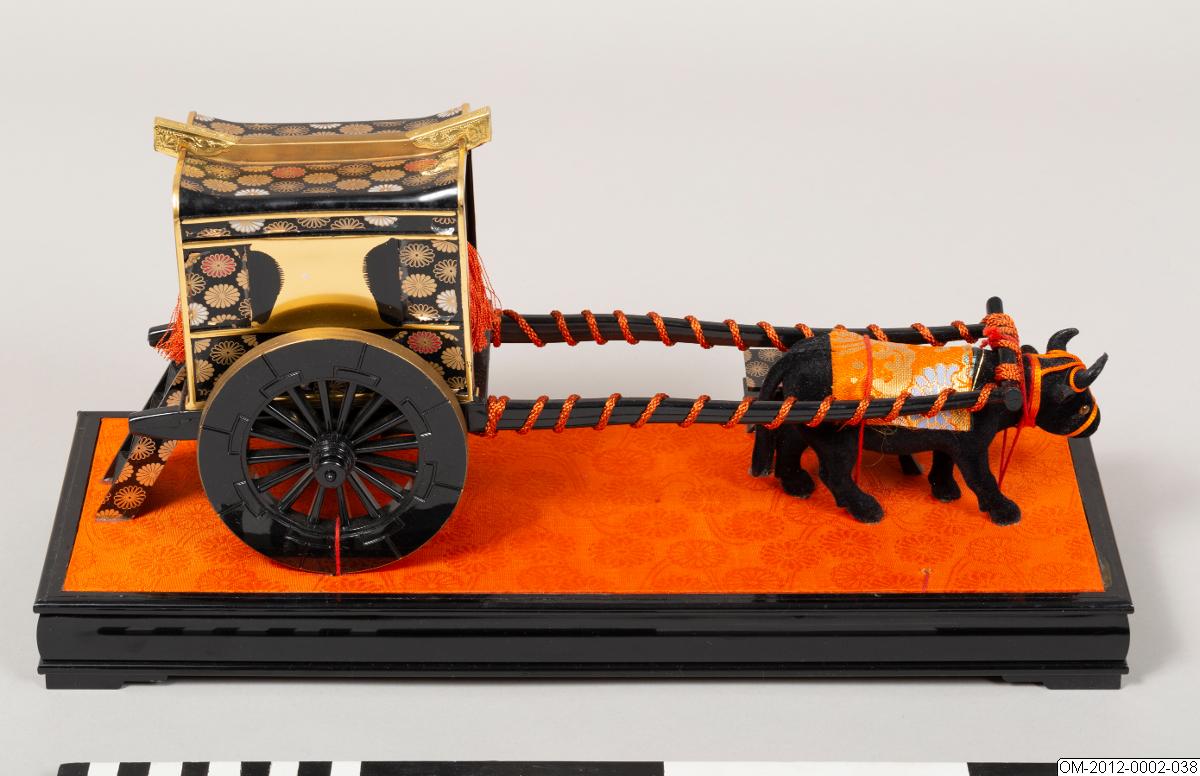 Uppsättning med en vagn dragen av en oxe. En typ av fordon som föredrogs av Heian-periodens adel (år 794-1185).