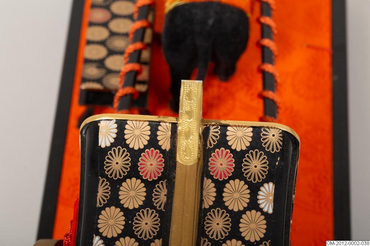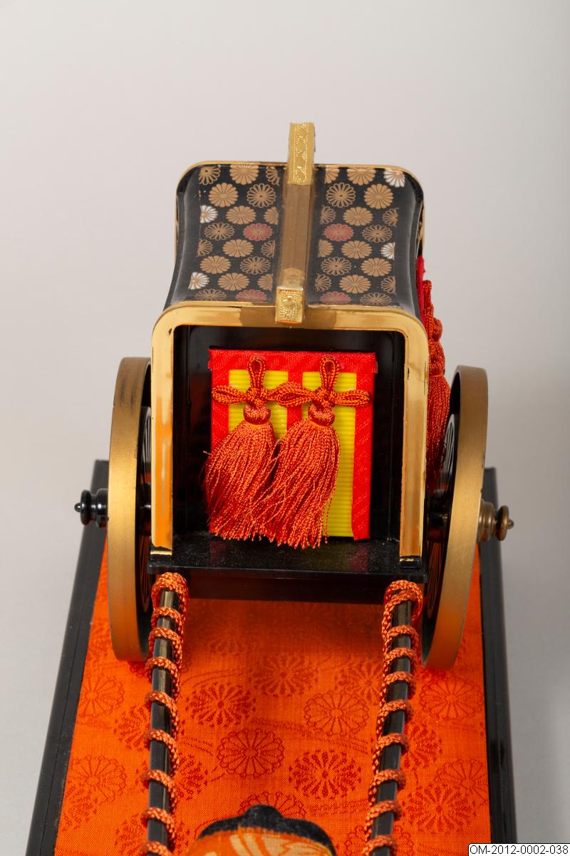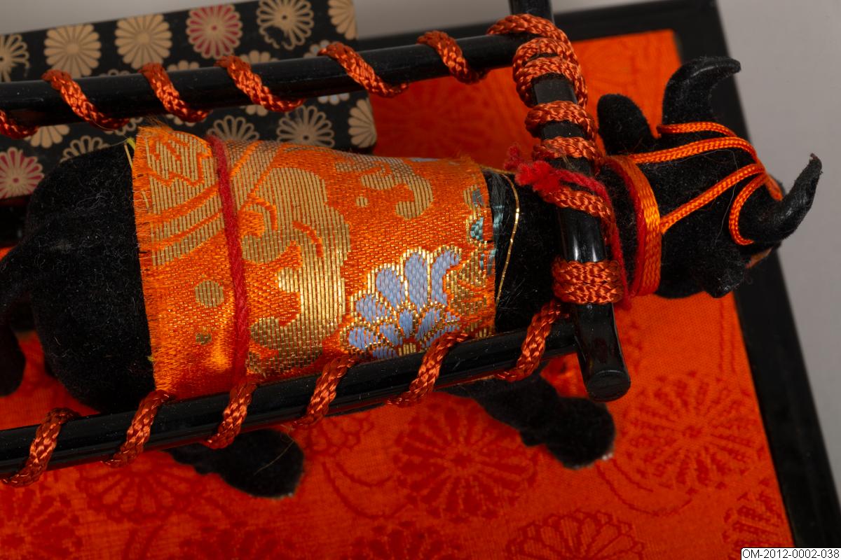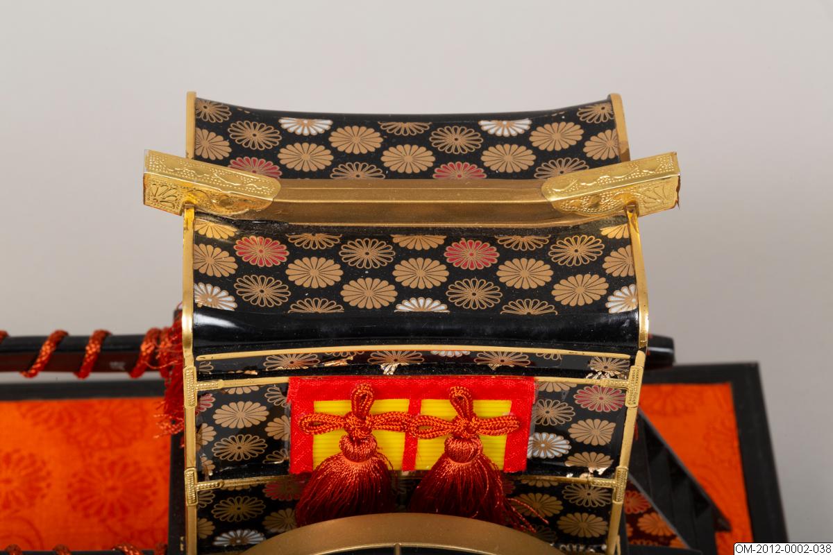 Del av uppsättning föremål till den japanska dockfestivalen, hina matsuri. Se introducerande beskrivning av dockfestivalen på samlingsnivån för OM-2012.