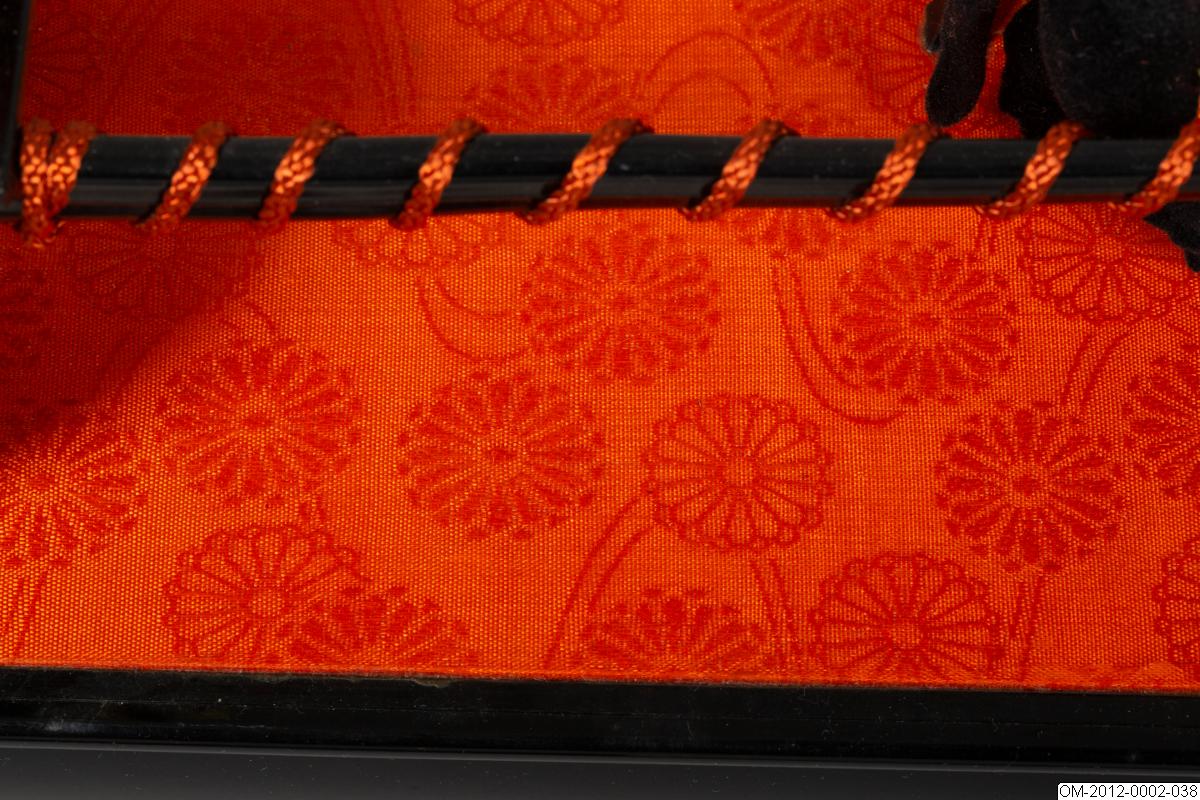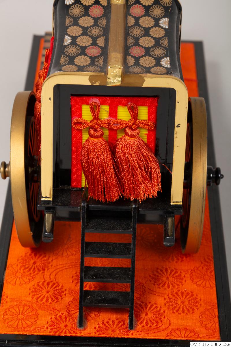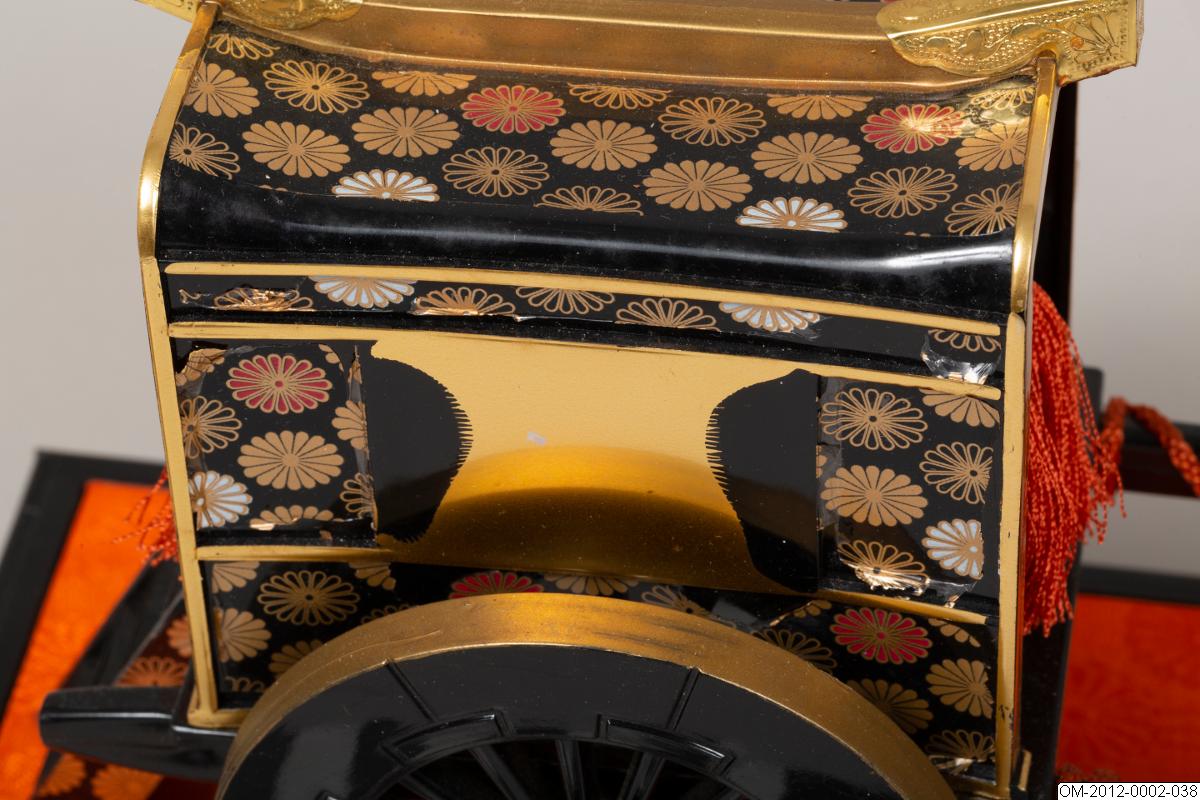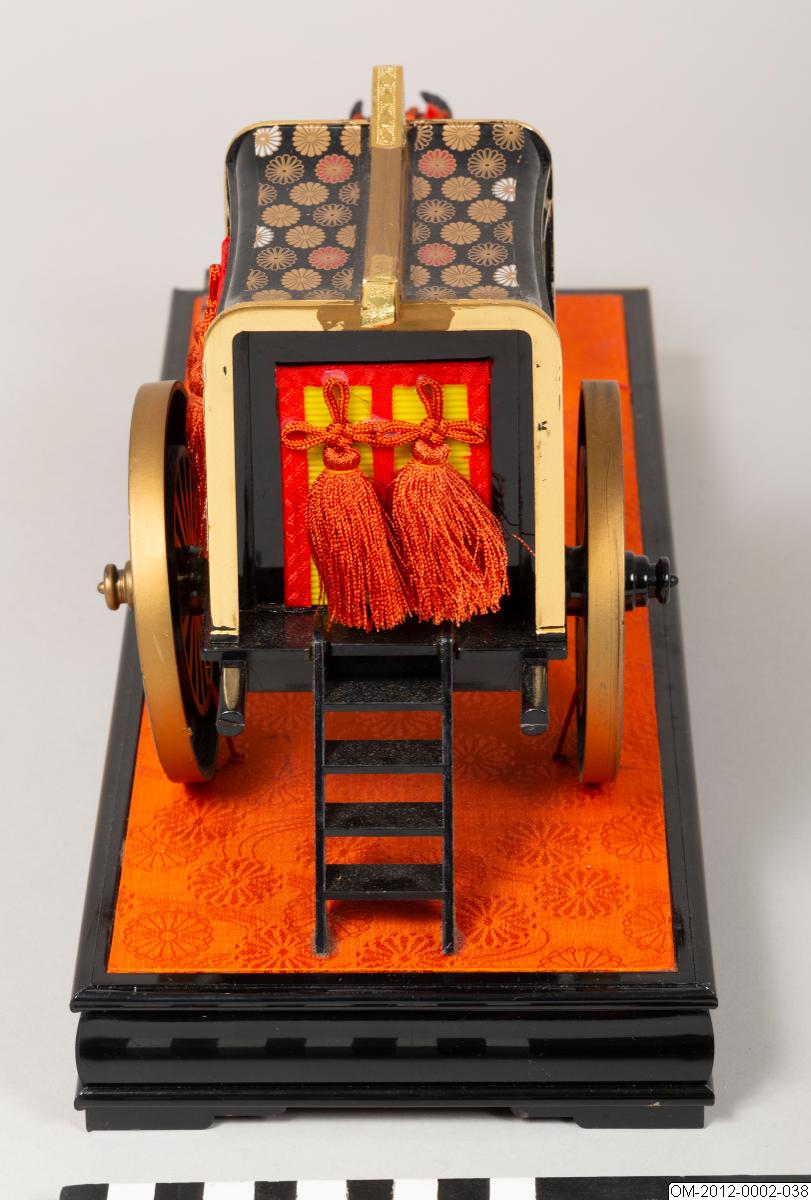 Del av uppsättning föremål till den japanska dockfestivalen, hina matsuri. Se introducerande beskrivning av dockfestivalen på samlingsnivån för OM-2012.