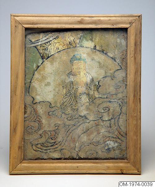 Målningen är gjord på ett stycke mur eller trä som tagits loss och satts inom glas och ram. De färger som syns mest idag är ljusgrönt och svart. Motivet föreställer Buddha bland moln. Målningen verkar vid ett senare datum ha överdragits med en hinna av något slags lack. Höjd 26 cm, bredd 21,5 cm.