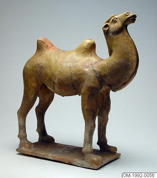 Den här gravfigurinen föreställer en kamel och är mer än 1000 år gammal. Enligt den traditionella kinesiska synen på döden så påminde dödsriket om den värld vi lever i. De döda hade samma behov och önskemål som de levande och gravgåvor kunde innefatta vardagsföremål, smycken och avbildningar av djur och betjänter. Om de levande inte försåg sina döda släktingar och förfäder med offer kunde de återvända för att ställa till bekymmer för de levande. Baktriska tvåpucklade kameler och människor av utländsk härkomst var ofta representerade i elitens gravar, eftersom de förknippades med handel, rikedom och exotisk lyx.