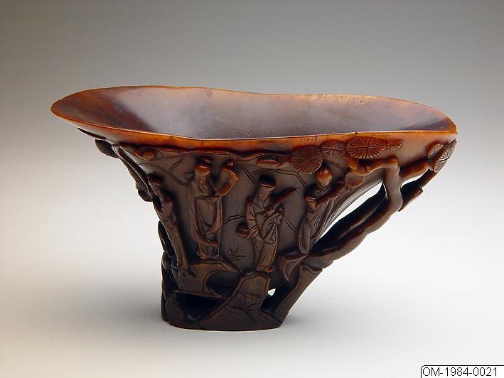 • Bägare av noshörningshorn dekorerad med daoistiska odödlighetsmotiv: