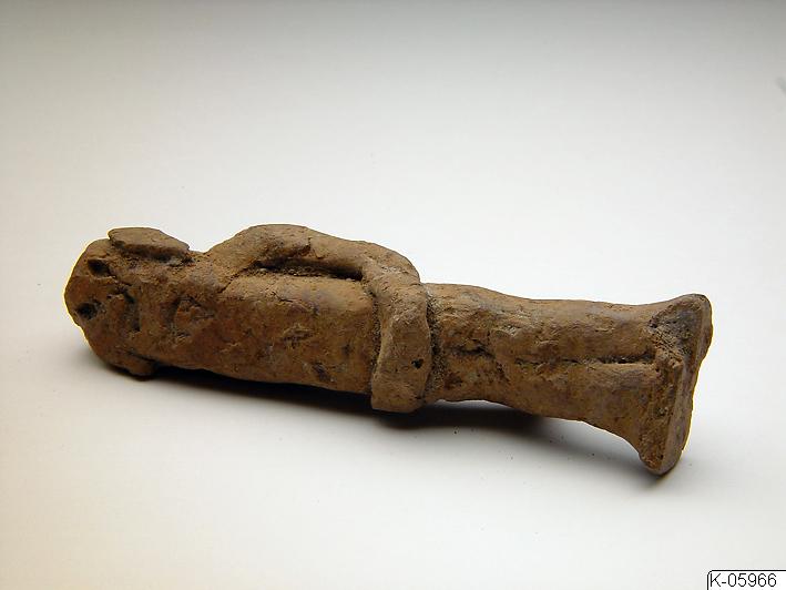 • Mycket liten skulptur av keramik i form av en människa. Ena