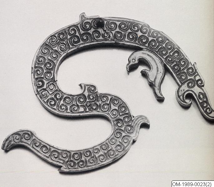 Likn. drake i British Museum, utan hål för upphängning. (S. jenyns, Archaic Jades in the British Museum. London 1951, Pl. 37B)