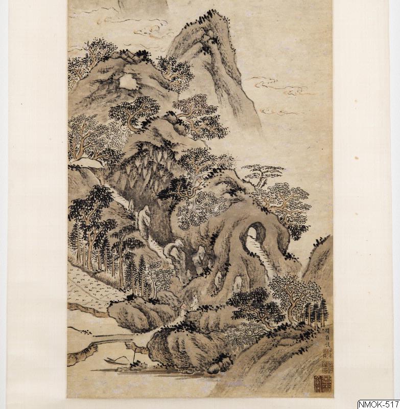 Xiang Shengmo 1597-1658. Chang Kuo-laos grotta nära I-hsing. Chekiang. Vertikalmålning. Tusch och färger på papper.