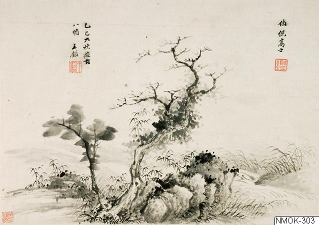 Flodlandskap i Ni Zans stil. Albumblad. Tusch på papper. Ur en serie om åtta.