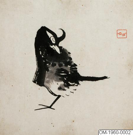 Bada Shanren 1626-1705. Albumblad med stående Mynah fågel. Tusch på papper.
