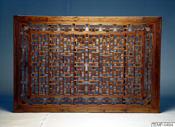 Del av gallerverk av trä. Baksidan klädd med papper. Från möbelmagasinet.Höjd 137 cm, bredd 89 cm.
