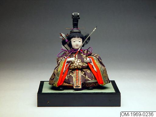Sittande docka samt en lös lans 15 st. dockor föreställande olika yrkeskategorier. Tillhörande podier och mindre föremål. Kroppen tillverkad i gips (eller något plastliknande) och är bemålad Gåva av fru Stephanie Giesecke 1969. Enligt. förvärvskat. ska dessa ha nr. OM-1969-0235-0266, men de har ingen synlig märkning. Höjd ca. 18 cm inkl. podium Från textilmag