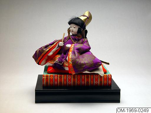 Sittande docka ev.kjesaren,dubbla socklar. 15 st. dockor föreställande olika yrkeskategorier. Tillhörande podier och mindre föremål. Kroppen tillverkad i gips (eller något plastliknande) och är bemålad Gåva av fru Stephanie Giesecke 1969. Enligt. förvärvskat. ska dessa ha nr. OM-1969-0235-0266, men de har ingen synlig märkning. Höjd ca. 18 cm inkl. podium Från textilmag
