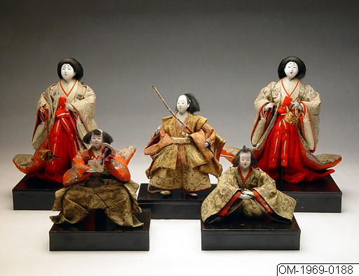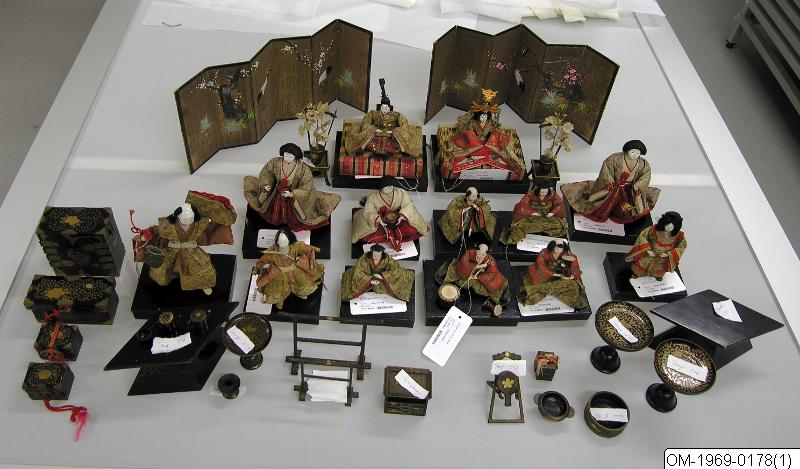 • Föremålet är en del av 43 stycken dockor av papier maché och tyg. Kejsarfamiljen och hovet med tillhörande möbler. För Flickornas dag, Dockfestivalen.