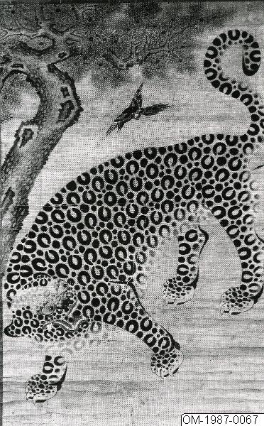 - Målning med tiger/leopard och skata