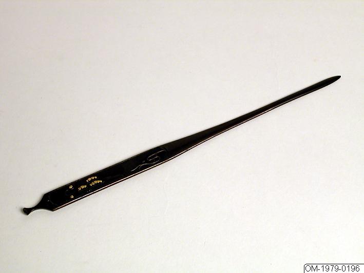 Enligt montertext del av isärtaget svärd, Wakisashi. Längd: Bredd: Från Japansalen, väggmonter.