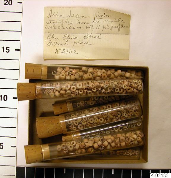 • Ur K-katalog: "K-2132:1-580. H på profilen. 179 stora stenpärlor, 381 mindre stenpärlor, 20 halva stenpärlor."
