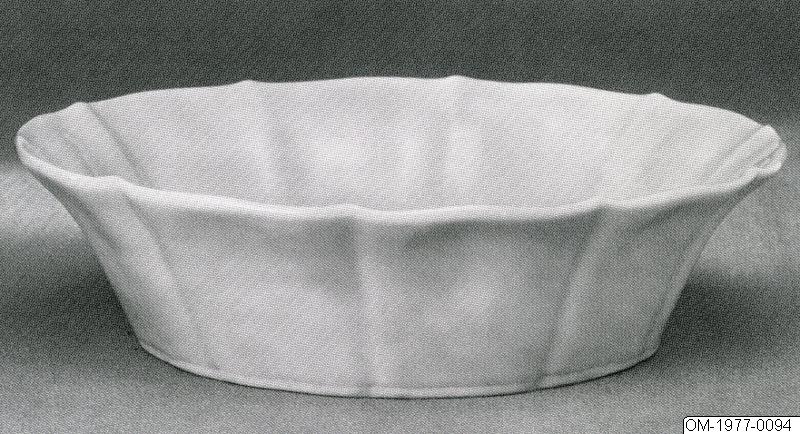 Från fristående monter i Tang-Ming-salen med porslin med dekor i underglasyrblått från Ming, 1500-1600-tal. Enligt montertext: “Tiopassformad skål med vit glasyr. Märke och tid: Zhengde (1506-1521). T...