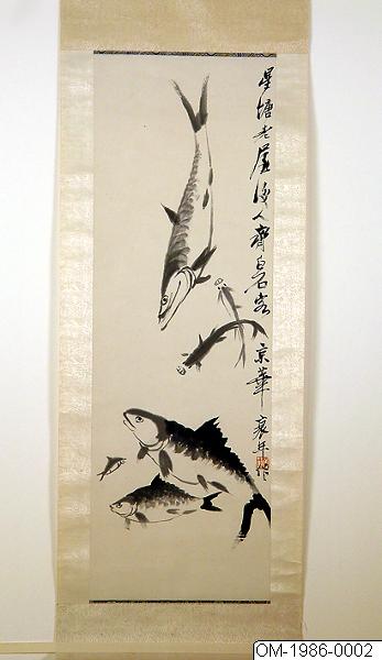 "Fiskar" Tusch på papper. Vertikalmålning.