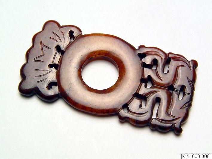 Ornament av sten dekorerat i delvis genombrutet arbete. På föremålet finns ditskrivet numret “501” i svart färg. Från låda märkt “Jader Ej gammalt (Diverse ej jader)”.