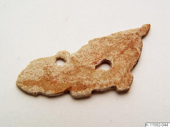 Föremål med två hål. Från låda märkt “Jader Pre-Han”.