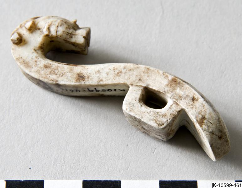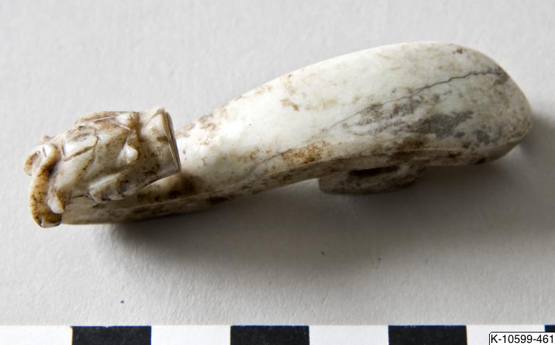 • Dräkthake dekorerad med drakhuvud. Knappen på baksidan gjord som en ögla.