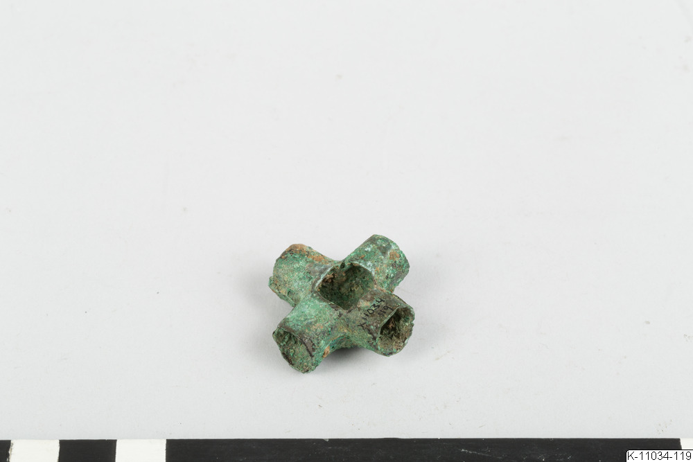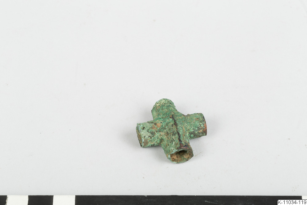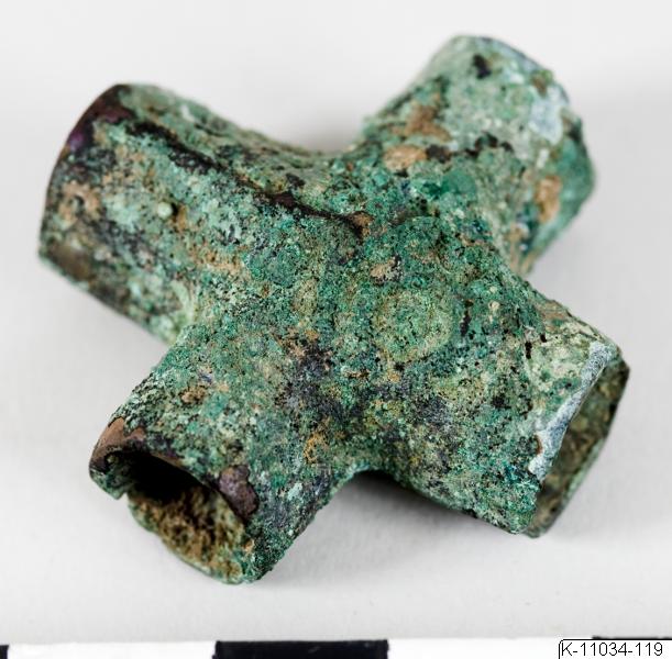 Korstub med fyrkantigt hål på baksidan. Från låda märkt “Korstuber”.