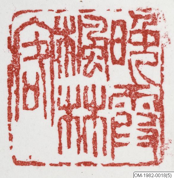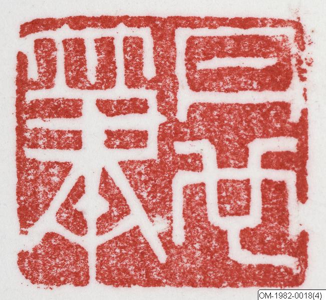 1) Under sign.: Zhu Dan (fyrkantigt, relief) 2) Högersida, överst: Wanxia fenglin ke (fyrkantigt, relief) 3) Högersida, nederst: Danye bi (fyrkantigt, intaglio)