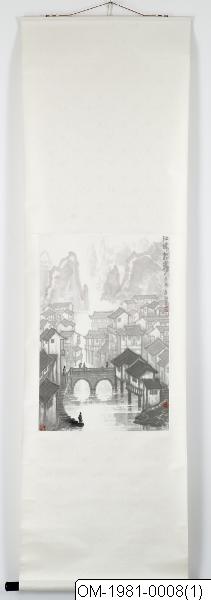 Jiang cheng chao wu, gengshen nian; "Stad vid Yangzi-floden i morgondimma: Gengshen-året (=1980), Signatur: Zhang Ping