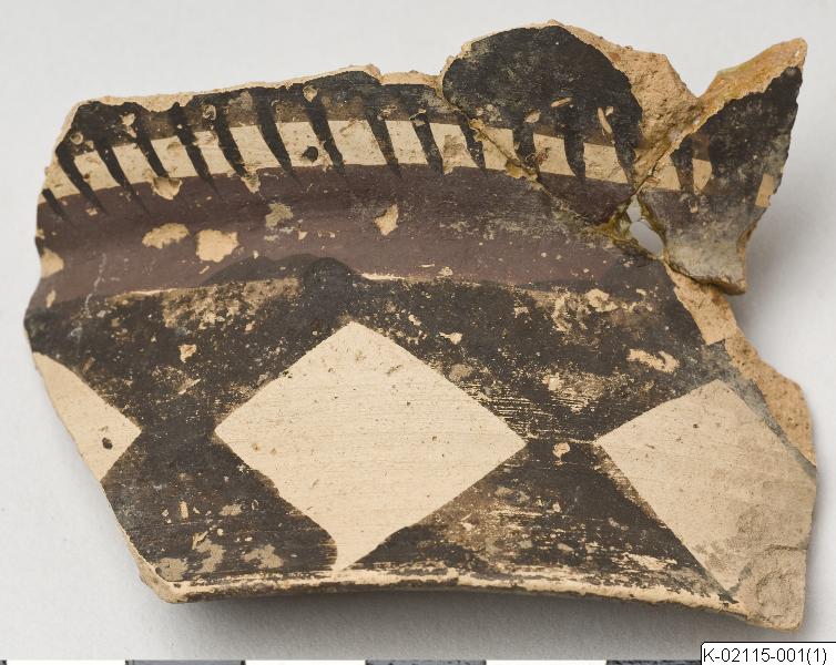 • Skärva med målning. OBS! Har limmats ihop med K-02115-002.
