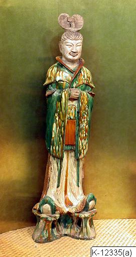 • Ämbetsman iklädd kort jacka med långa ärmar som döljer händerna. Blyglasyr av trefärgstyp, s.k. sancai. Huvudet oglaserat.